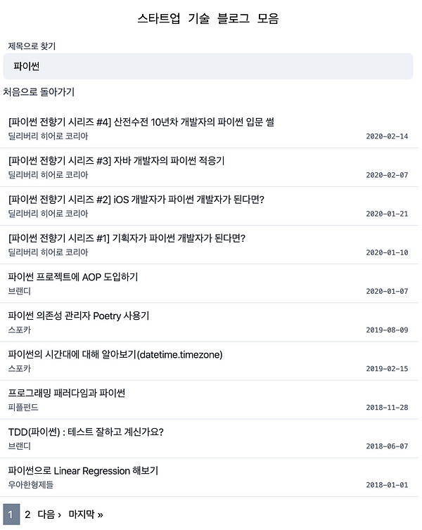스타트업 기술 블로그 모음에 들어와서 페이지를 넘기는 이유를 다음 페이지에 어떤 글이 있을지 궁금해서, 시리즈 다음 글을 찾기 위해서 두가지로 추려보았습니다.