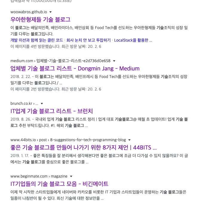 - 많은 회사가 기술블로그를 시작합니다 라는 글 한개밖에 없습니다.
