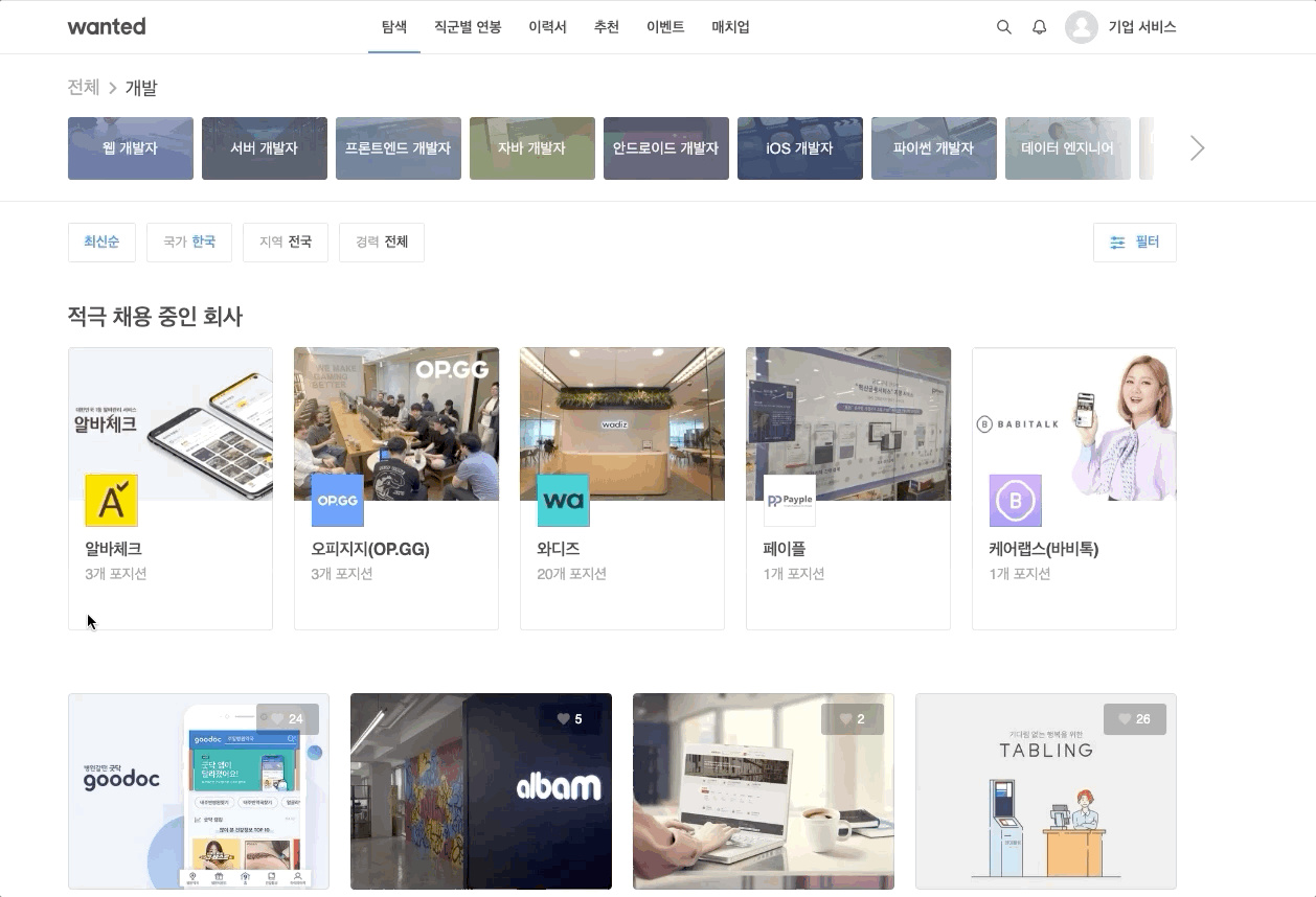 - 원티드에서 찾은 개발자 채용 공고는 2304개입니다.