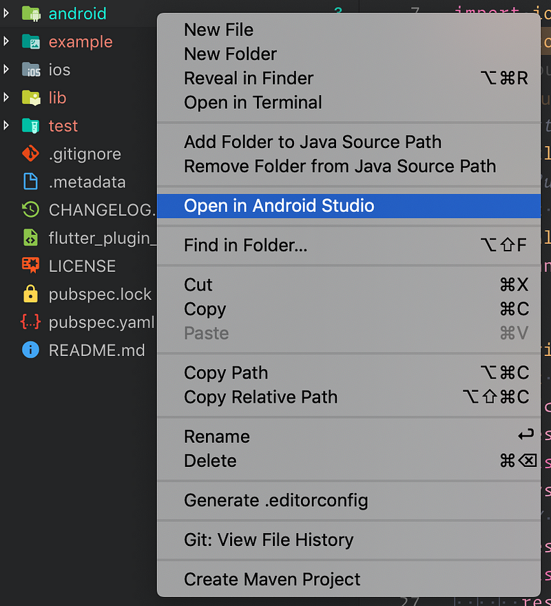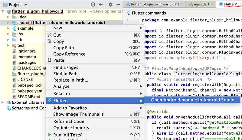 만약 외부에서 개발한 aar 패키지를 받아 Flutter용으로 개발해야한다면, Flutter 프로젝트를 플러그인 템플릿으로 만들어아합니다. 그리고 그 플러그인을 실제 앱에 넣어 개발하면 됩니다.