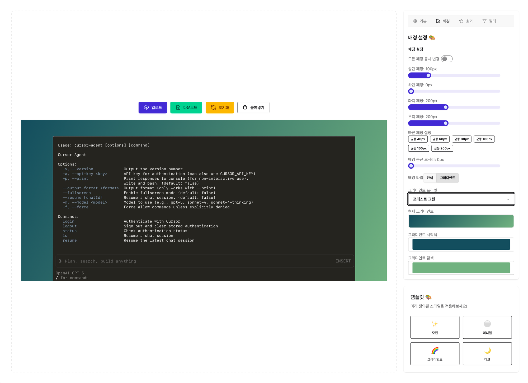 최근에 결과를 글로 적다보니 스크린샷을 첨부하는 경우에 무언가 허전하다는 생각이 자꾸 들었다. 요즘 웹페이지들을 보면 스크린샷 주변에 배경을 추가하는 경우가 꽤 있다.