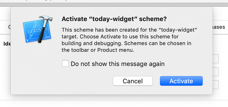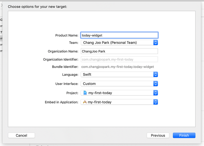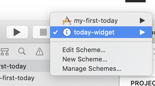 Cocoa App과 방금 추가한 today-widget이 추가됩니다.