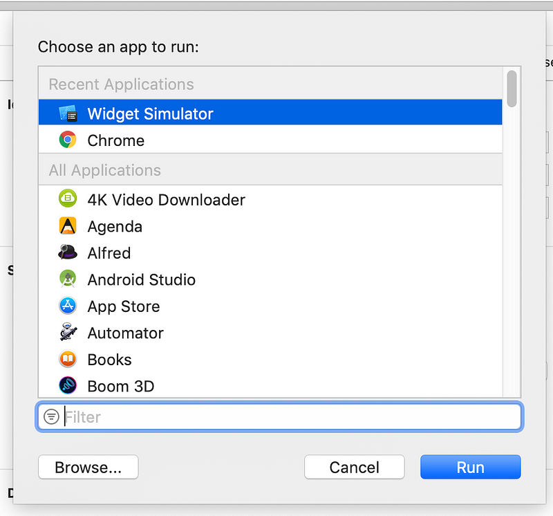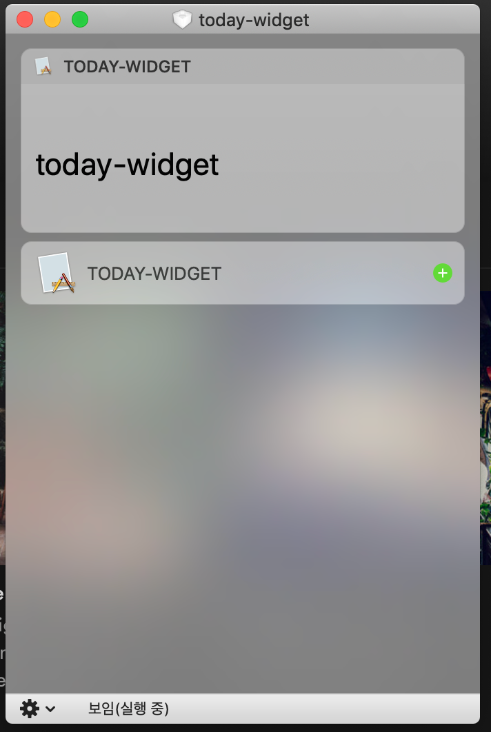 위젯 시뮬레이터에 앱이 올라간 것을 확인할 수 있습니다. 여기서부터 macOS / Cocoa App처럼 스토리보드를 이용해서 위젯을 만들 수 있습니다.